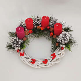 Tartós kompozíció, nem élő virágot tartalmaz.